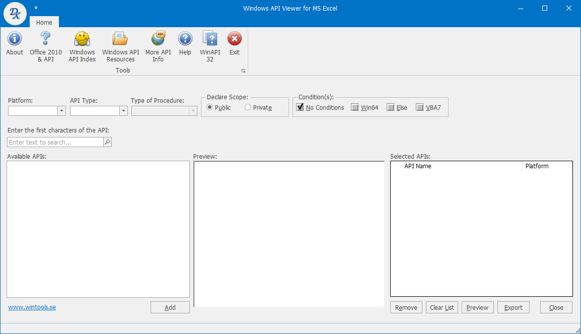 Windows API Viewer for MS Excel
